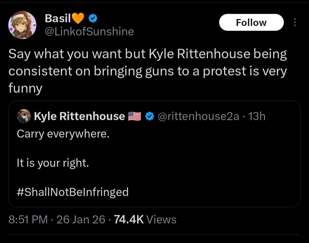 @threalist Kyle ain't wrong here. The LARPer Prettie was wrong. He was an anti-gunner whos sole reason for the legal carry was to break the very laws he claimed to uphold. Real 2A CCW citizens do not break laws to make points with so-called "friends".