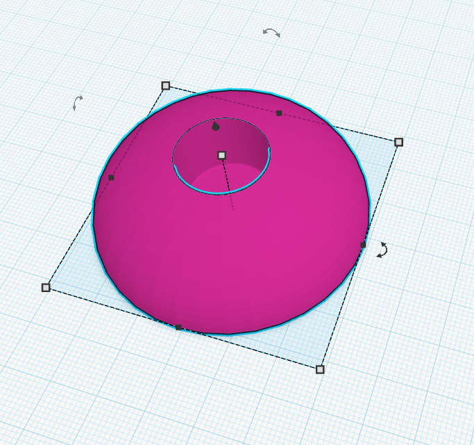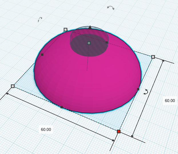 The little guy loves blowing out candles, so I got a large candle, but it's obviously a bit unstable, so I made a candle holder out of PLA. Here you can see the two parts. I started with a stock half sphere, and took away a cylinder from the center. I added a bit of a bevel to the cylinder with a slider.