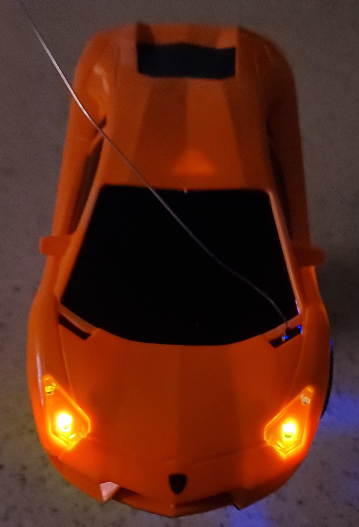 It turns out my boy in particularly likes vehicles that light up when they're going forward and backwards, so, I looked around the garage and I have no have these little green LEDs and a red led, and so I hatched a plan. The project was going to be to mount headlights inside the chassis, and it turns out that there was room in the chassis for these headlights, and then later on I expanded to include a tail light, because that just seems more fun that way. As I was going, I realized that I had just gotten a call from the bank, and they told me that if I kept on buying double a batteries for remote control cars that I was going to go broke and we were going to have to live in the street. So, I decided to make this a rechargeable $5 RC car from the dollar store. Previously, the dollar store used to buy these little rechargeable battery banks. They don't really do much with modern phone, but they do provide 5 volts which is more than enough for a little RC car, and they have a charging port. I haven't figured out exactly how to get a charging port outside of the car yet, so for the time being the plan is to basically have to rip the car apart every time it's time to charge, but I was able to fit everything together in the chassis, and it works. It gets power, although I have to admit not very well, I think there might be a minimum load that forces it to cut out (might be a max load cutout as well). However, the way that it's wired up the lights light up when it's moving forward and the tail light lights up when it's going in reverse, and considering that even on AA batteries this thing was running for hours on end, I expect to get a pretty good battery life out of it.