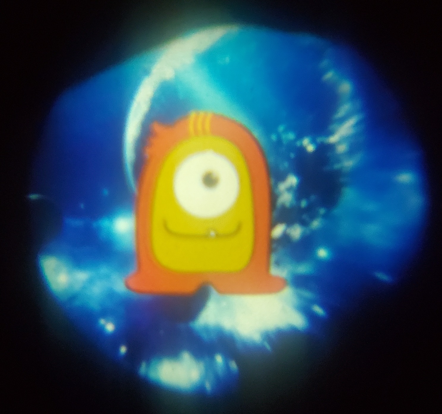 This is my son's's Slavic alien. There are a bunch of different aliens that project on the wall from this flashlight that he bought, but every time I see this one it just looks like someone from Russia wearing a tracksuit, so we always say "oi, suka!" When he shows up in rotation.